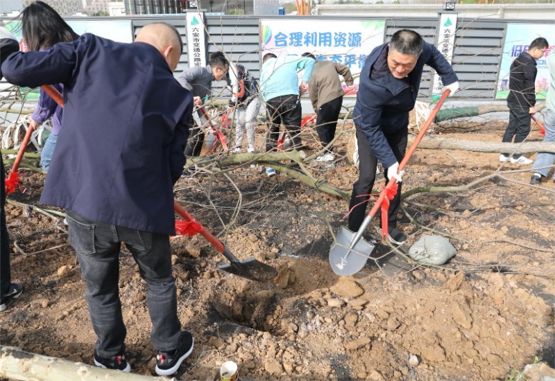 在交通公路實業(yè)董事長、總經理萬世林的帶領下,大家擼起袖子,揮鍬培土,澆水栽種,分工合作,配合默契。