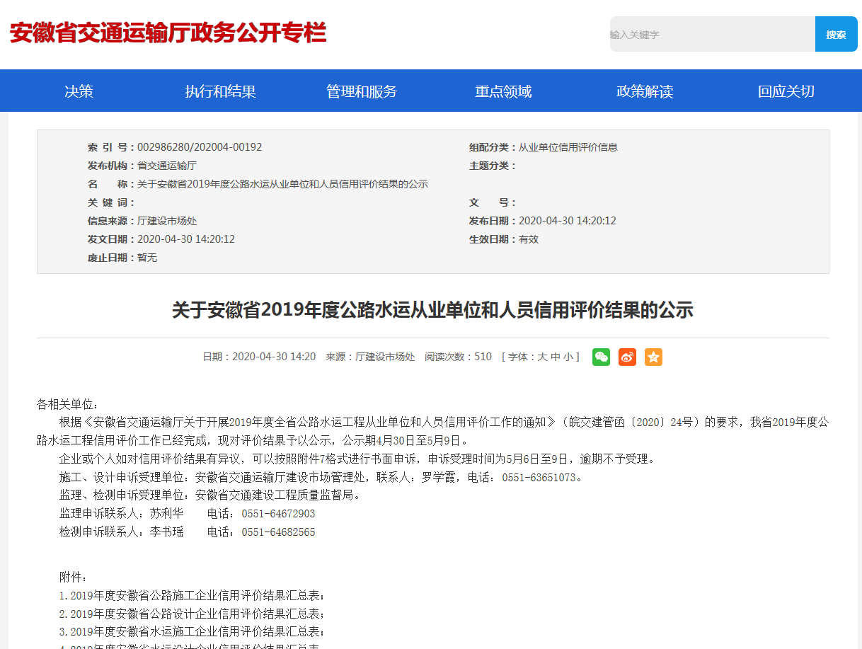 2019年企業(yè)信譽(yù)等級證明材料安徽省交通運(yùn)輸廳AA級信譽(yù)等級查詢網(wǎng)址: