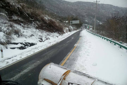 2018年1月24號(hào)大雪再次降臨時(shí),我們將改造好的兩臺(tái)鏟雪車投入山區(qū)道路使用,取得了很好的效果,24號(hào)夜里,又加班突擊改造2臺(tái)鏟雪車并于25號(hào)投入到國(guó)道省道鏟雪中,在應(yīng)用中發(fā)現(xiàn)改造后的鏟雪車鏟雪速度快,清除效果好。