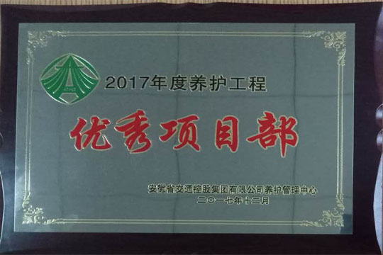 2017年12月14日,2017年度瀝青路面養(yǎng)護工程交工驗收暨總結(jié)表彰大會在合肥召開,六安市交通公路實業(yè)有限公司2017-2019年度安徽省部分高速公路瀝青路面專項養(yǎng)護工程03標(biāo)項目經(jīng)理部榮獲2017年度養(yǎng)護工程”優(yōu)秀項目部“和”安全管理先進單位“稱號。